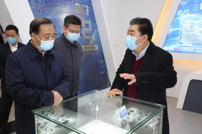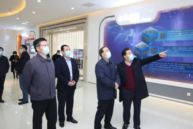 在公司大廳,當看到天和自主研制的疫情防控產(chǎn)品——“雙光測溫卡口智能哨兵”時(shí),姜鋒部長(cháng)對企業(yè)高度的社會(huì )責任感充分贊許。他鼓勵企業(yè)充分發(fā)揮科技優(yōu)勢,研究市場(chǎng)需求,研發(fā)出更多具有市場(chǎng)競爭力的產(chǎn)品。隨后,姜鋒一行來(lái)到公司文化展廳和產(chǎn)品展廳,實(shí)地察看企業(yè)發(fā)展情況。賀增林董事長(cháng)匯報了公司天融工程、大數據建設、5G通信產(chǎn)業(yè)園的基本情況。姜鋒部長(cháng)一邊參觀(guān),一邊細細詢(xún)問(wèn)企業(yè)生產(chǎn)運營(yíng)、市場(chǎng)形勢、產(chǎn)學(xué)研合作、復產(chǎn)碰到的困難等情況。