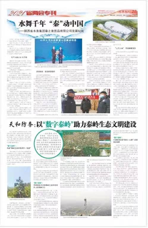 2021年1月26日,由陜西省政協(xié)主管、主辦的《各界導報》,以“天和防務(wù):以‘數字秦嶺’助力秦嶺生態(tài)文明建設”為題,以1/2版的篇幅對天和防務(wù)數字秦嶺示范項目進(jìn)行了報道?,F轉載如下: